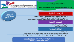 تعلن “شبكة المرأة السورية” – (نساء شمس) عن حاجتها للتعاقد مع استشاريات/يين لكتابة سياسات داخلية