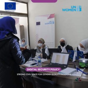 نظمت شبكة المرأة السورية بدعم من الاتحاد الاوربي و UN Women ورشة عمل ضمن برنامج التطوير المؤسساتي للشبكة، بهدف تطوير سياسة الأمن الرقمي.