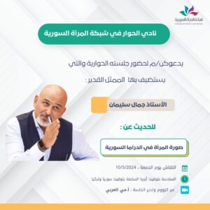دعا نادي الحوار في شبكة المرأة السورية الى جلسته الحوارية والتي استضاف بها الممثل القدير جمال سليمان للحديث عن صورة المرأة في الدراما السورية