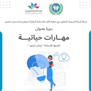 دعت شبكة المرأة السورية بالتعاون مع منظمة تآلف الإنسانية الدولية لحضور دورة تدريبية بعنوان” مهارات حياتية ”