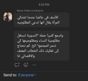 في مداخلة لـعزة البحرة (ممثلة وعضوة نادي السينما في الشبكة): “العنف الإلكتروني يعكس انهيار الحوار… كيف نحمي لغتنا من التحول إلى خنادق؟ اللغة قادرة على تجريد الآخر من إنسانيته”.