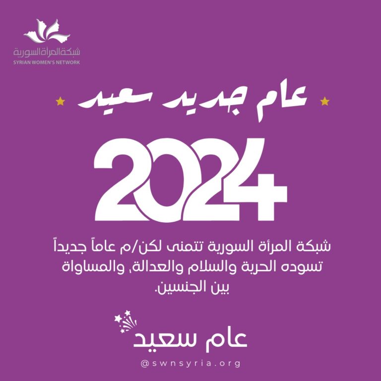 شبكة المرأة السورية تتمنى لكن/م عاماً جديداً تسوده الحرية والسلام والعدالة، والمساواة بين الجنسين.