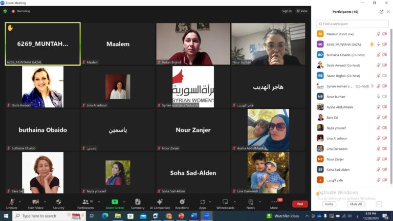 عقد مساء السبت بتاريخ ٢_١٢_٢٠٢٣ مؤتمر صحفي على منصة زوم برعاية شبكة المرأة السورية…
