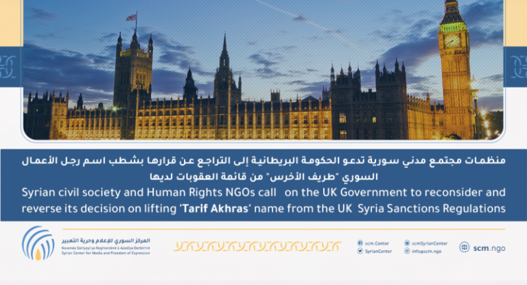 منظمات مجتمع مدني وحقوق إنسان سورية تدعو الحكومة البريطانية إلى التراجع عن قرارها بشطب اسم رجل الأعمال السوري “طريف الأخرس” من قائمة العقوبات لديها