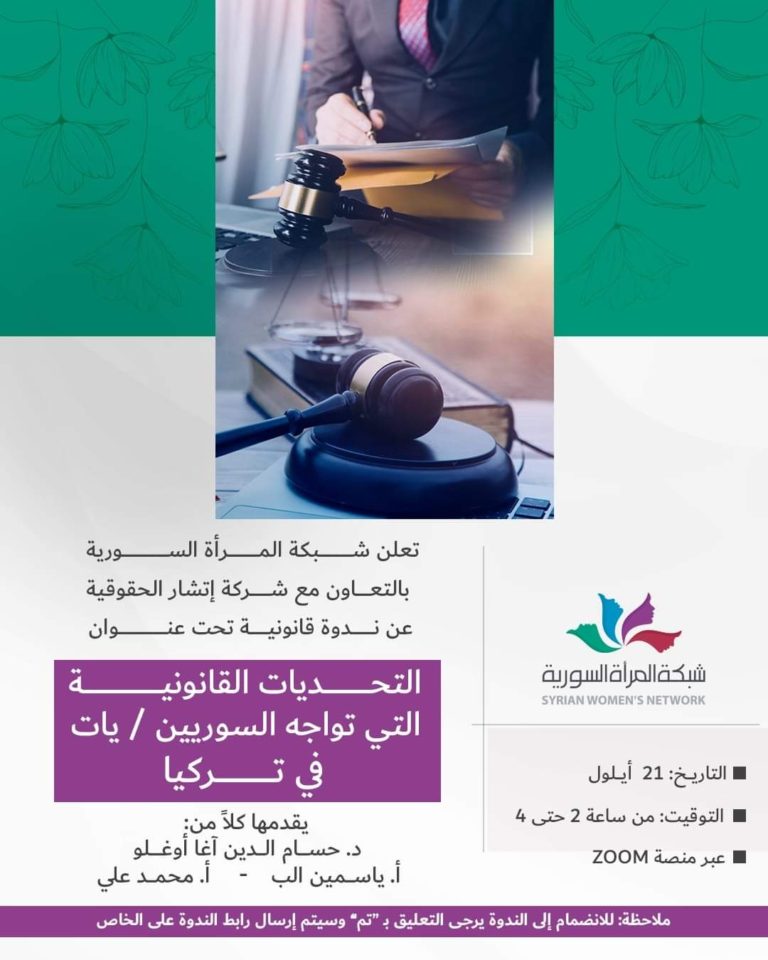 التحديات القانونية التي تواجه السوريات والسوريين في تركيا – ندوة قانونية – شبكة المرأة السورية