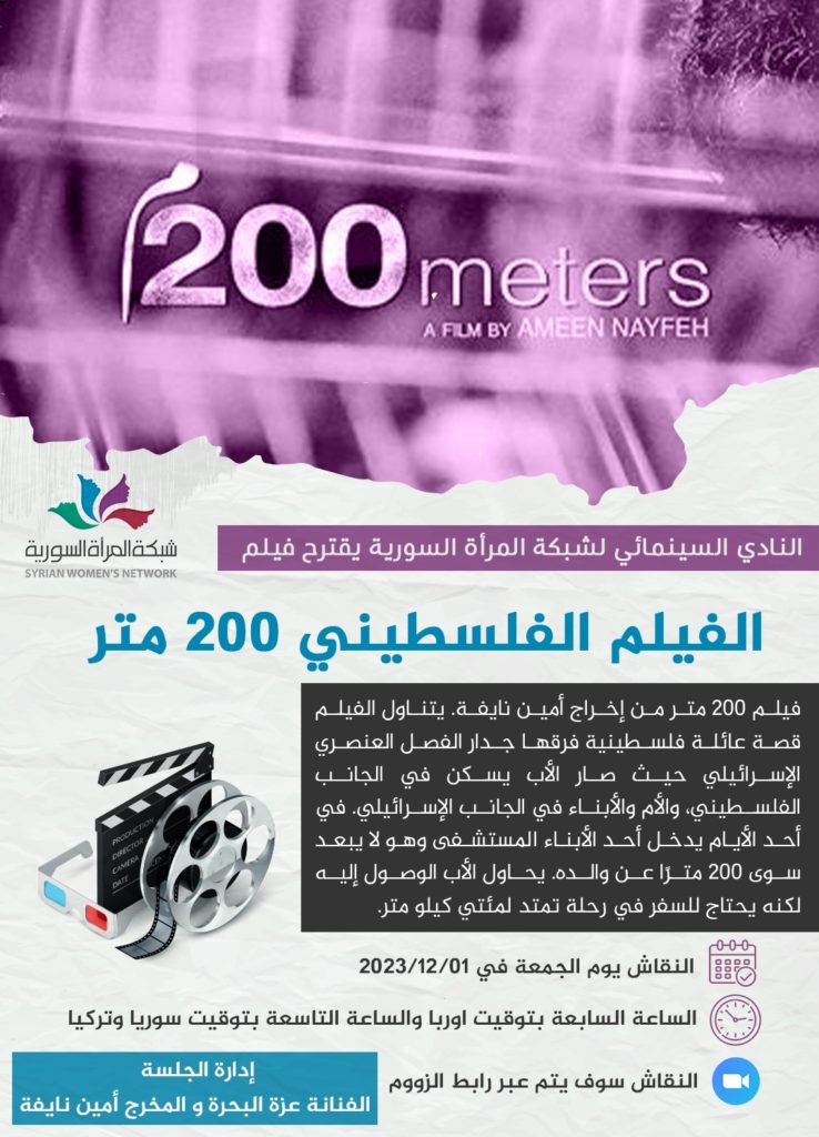 نادي السينما في شبكة المرأة السورية يناقش فيلم “200 متر”، بحضور مخرجه “أمين نايفة”